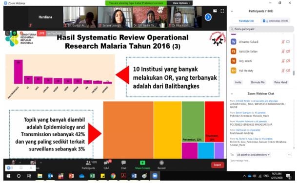 Held virtually through ten webinar sessions, the AMRI Seminar was organized by the National Malaria Programme (NMP) of the Ministry of Health (MoH) in collaboration with the Indonesian Association of Researchers on Parasitic Diseases (P4I) and Indonesian Public Health Entomologist Association (PEKI), WHO, and UNICEF.