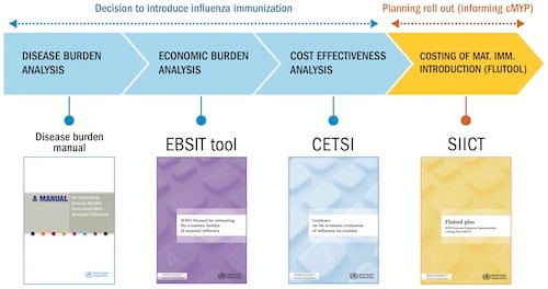 WHO offers a Manual for Estimating Disease Burden Associated With Seasonal Influenza to countries. With disease burden estimates established, the below resource documents can then support the assessment of the economic and social benefits of introducing influenza vaccination or to expand existing vaccination strategies.